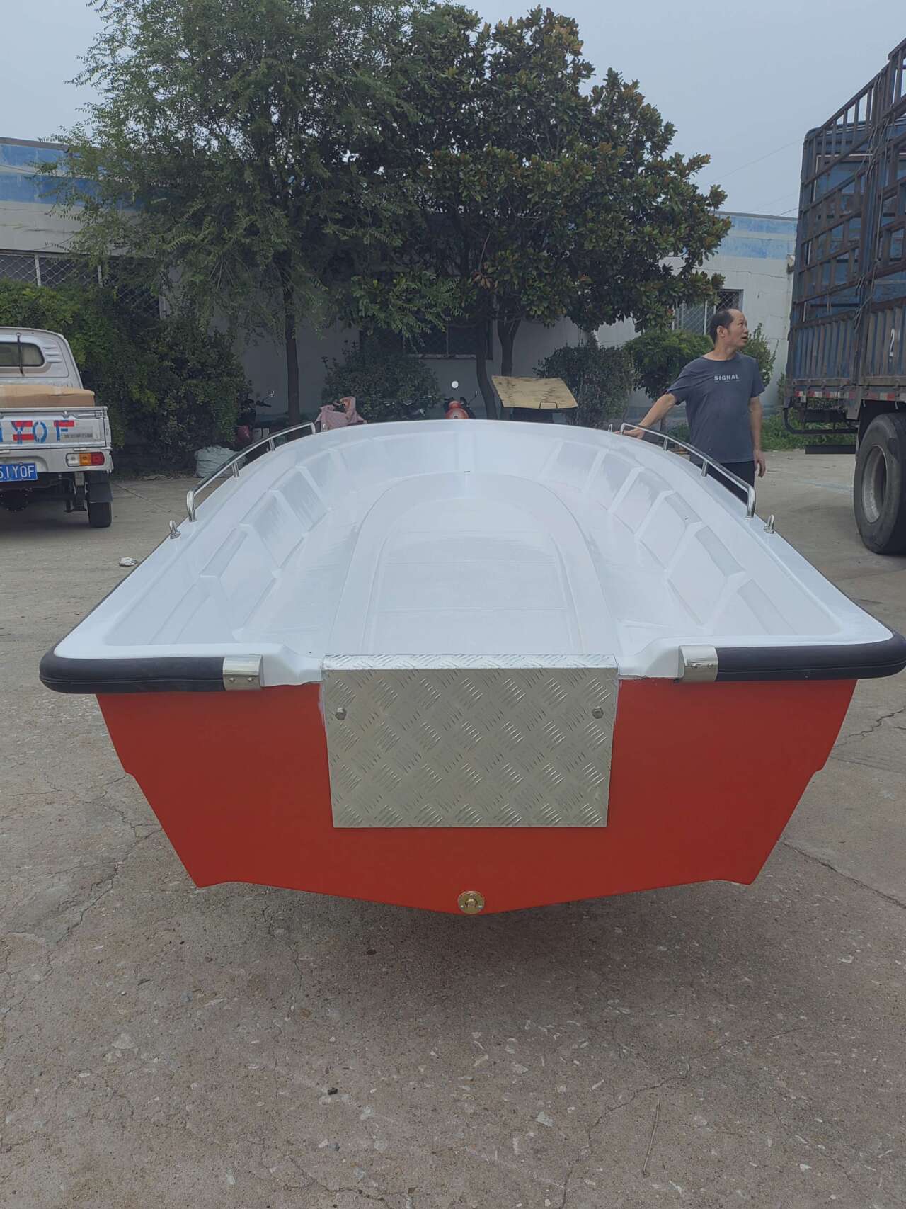 作為國家搶險救災指定的玻璃鋼沖鋒舟,除了牢固耐用外,氣內部空間大,承載人員多,操作簡單,高船幫還可以抵御一定程度的風浪。光滑流線和深“V”船型有效的減少了水阻力。搭載較小的動力即可獲得不錯的速度。因此適應環(huán)境強,可以應急救援、運送物資、機動靈活。