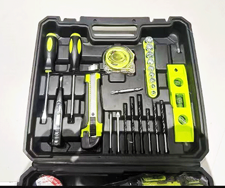 這款工具箱集多種實(shí)用工具于一身,包含尖嘴鉗、手電鉆等。尖嘴鉗能在狹小空間靈活操作,用于夾捏、剪切小物件;手電鉆可輕松應(yīng)對木材、塑料等鉆孔作業(yè)。此外還有其他常用工具,能滿足日常家裝維修、簡易手工制作等多樣需求 。